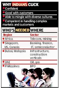 While Africa is exploring Indian talent for the telecom and mining spaces, Singapore, Canada and the US are looking for talent for their banking and finance, IT and semiconductor industries. On the other hand, Dubai and Malaysia are expected to be looking for personnel for infrastructure and construction verticals, while UAE’s oil and gas sectors have been largely hiring Indian engineers and managers.