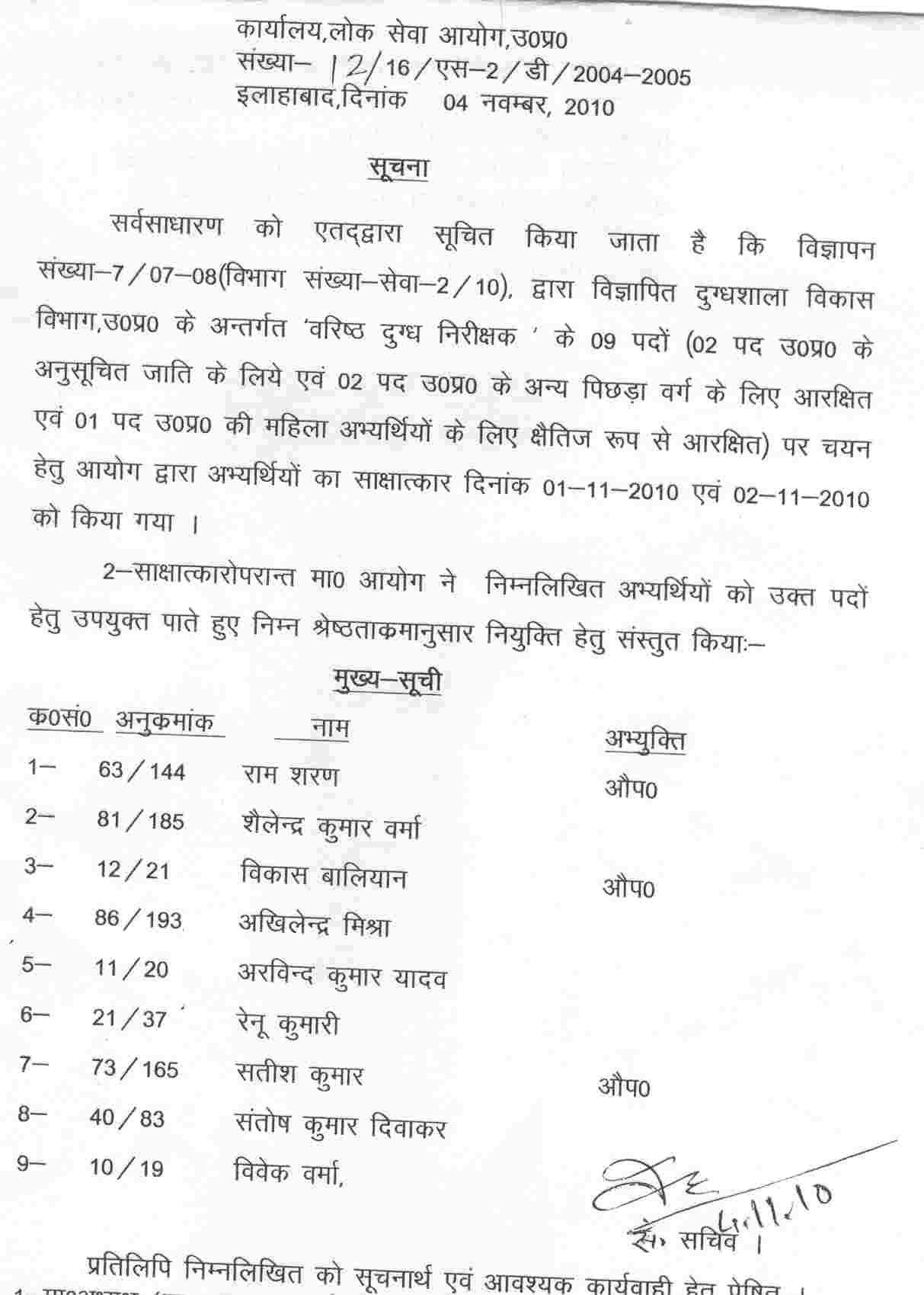 Uttar Pradesh Public Service Commission (UPPSC) announced Result of Varisht Dugdh Nirdeshak.The links for the Results are provided below.